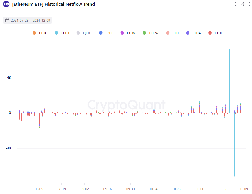 이더리움 ETF로의 유입은 지난 몇 달 동안 지속적으로 증가해 왔으며 다음과 같은 특정 날짜에 유의미한 유입량이 있었습니다.